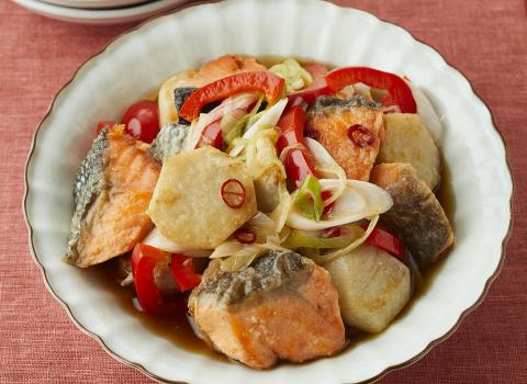 旬の鮭をピリ辛の甘酢でさっぱりと