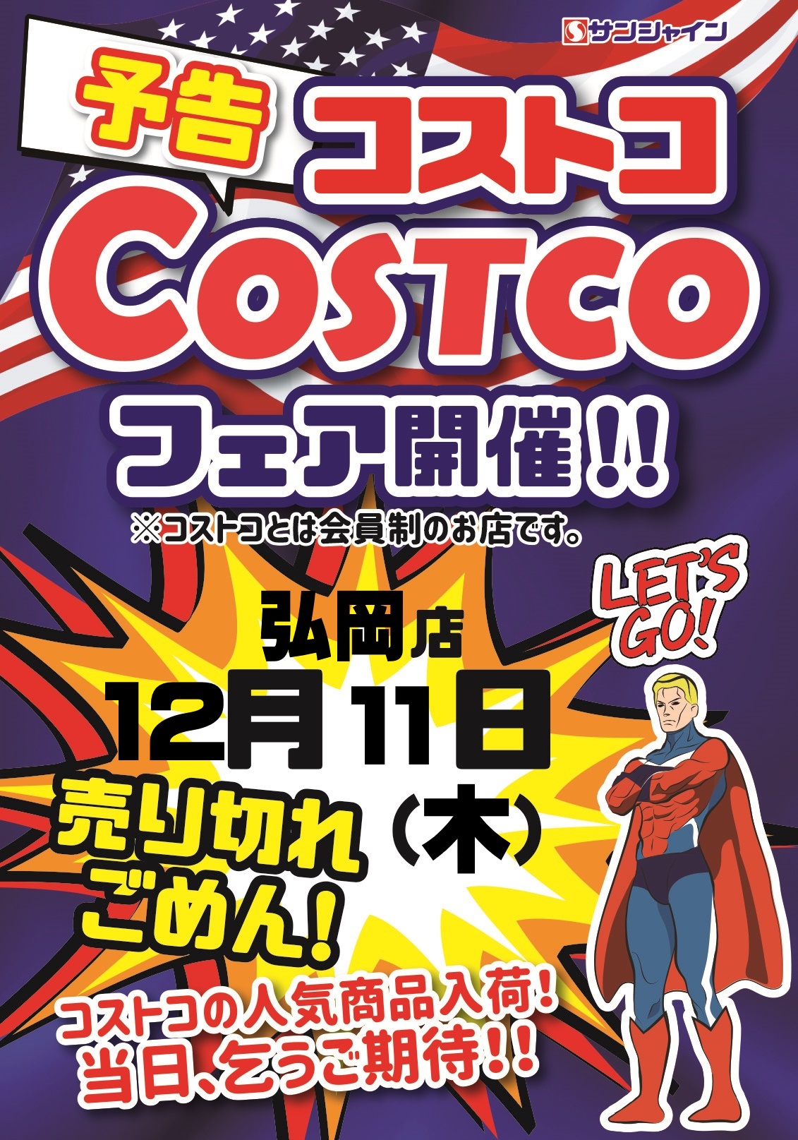 2025年12月11日(木)サンシャイン弘岡 コストコフェア開催!!!