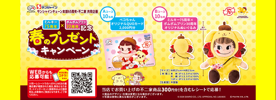 サンシャインチェーン本部×不二家 春のプレゼントキャンペーン実施中!