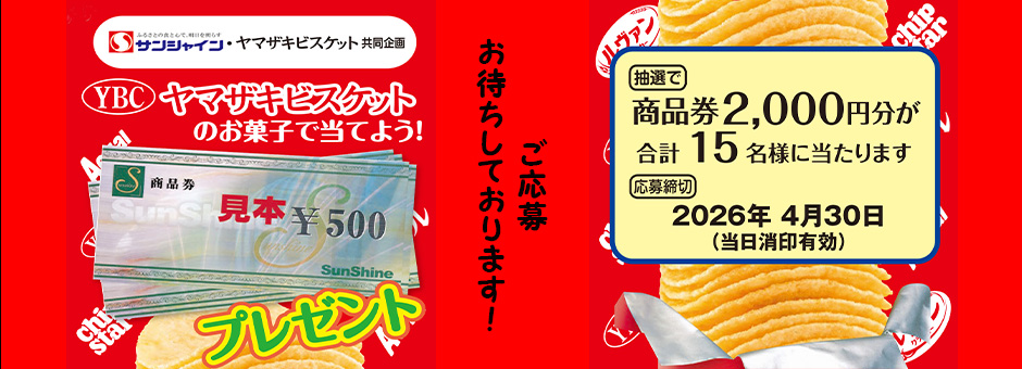 ヤマザキビスケットのお菓子を買ってサンシャイン商品券プレゼントキャンペーン実施中!